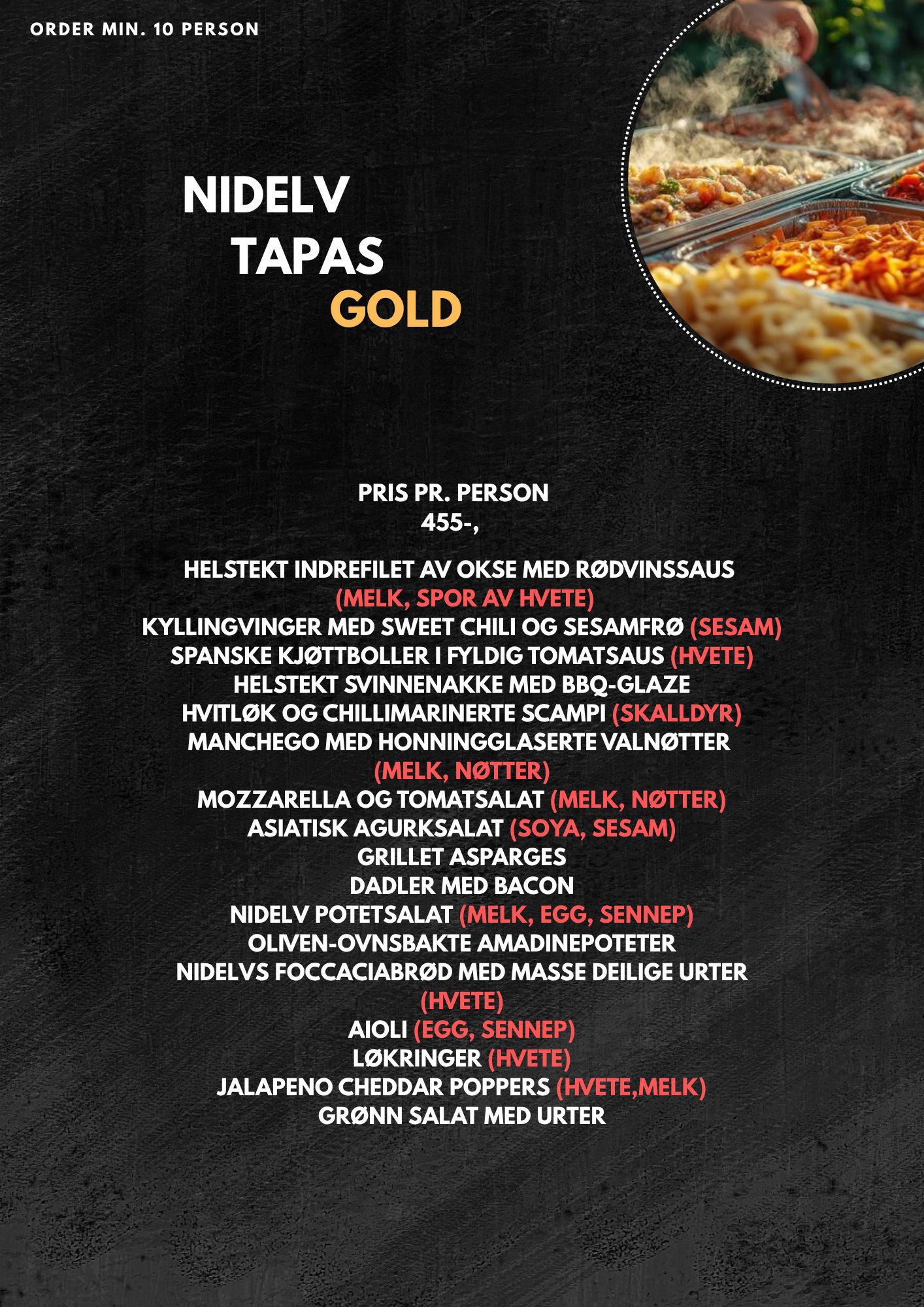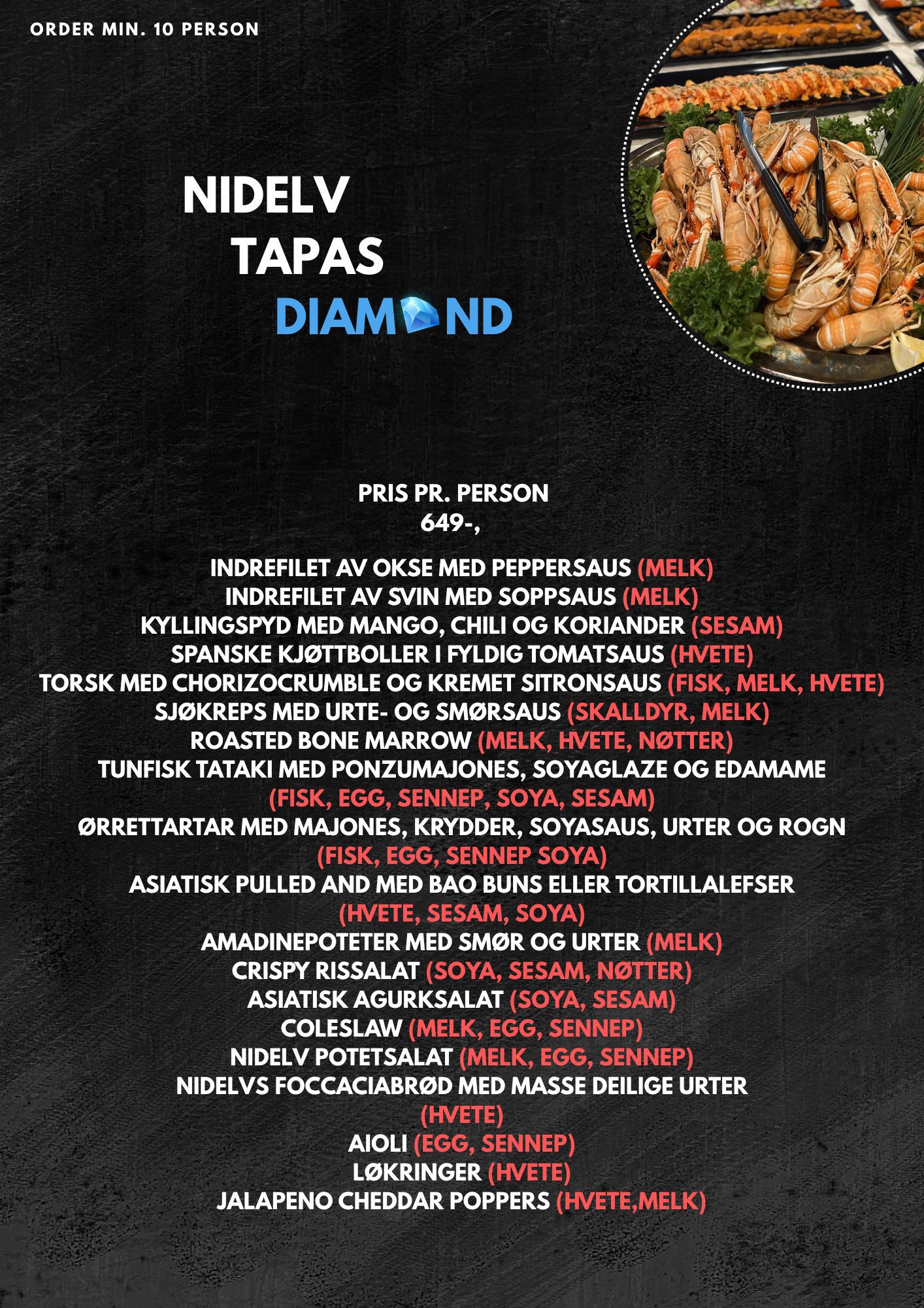 Vår meny kan skreddersys etter ønske. Vi tilbyr vår tapas meny, skalldyr buffet og vår deilig grillbuffet.